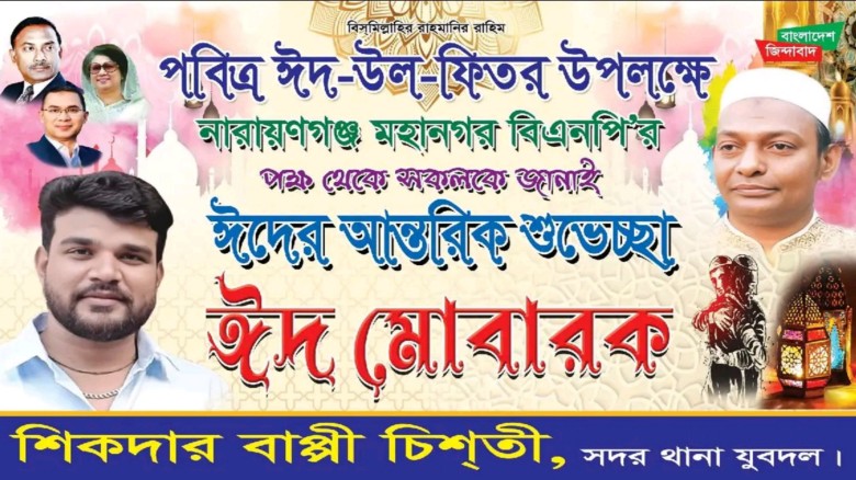 শিকদার বাপ্পীর পক্ষ থেকে নারায়ণগঞ্জবাসীকে ঈদের শুভেচ্ছা ঈদ মোবারক’...